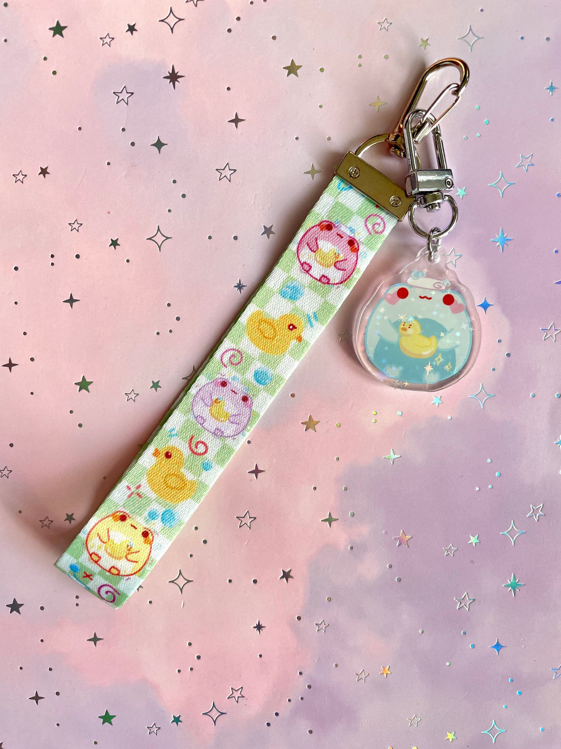 Bathing Frog Lanyard with Keychain | Sparkling Glitter Frog Charm